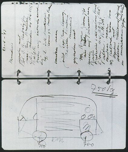 "The original idea for the T1 van or Volkswagen Type 2 came from the Dutch Volkswagen importer Ben Pon, who drew the first sketches of the van on April 23, 1947."
